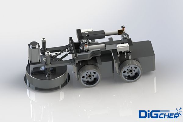 機(jī)器人采用四輪驅(qū)動(dòng),負(fù)載能力強(qiáng),可在在垂直面及天花板面任意行走;電機(jī)驅(qū)動(dòng),具有穩(wěn)定可靠的立面吸附措施;機(jī)器人前端的毛刷盤(pán)負(fù)責(zé)清理和回收模板表面的粉塵和殘?jiān)?br />