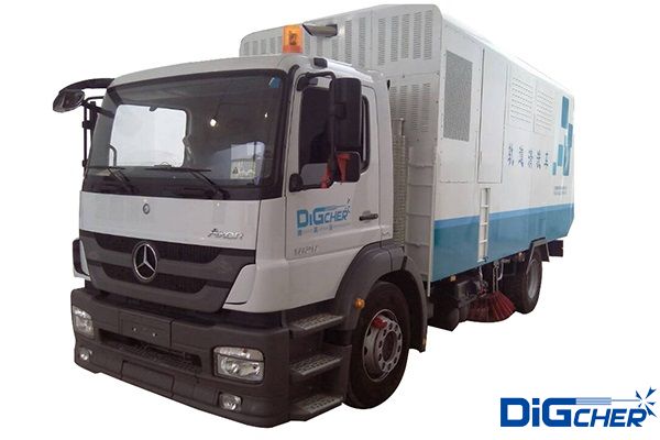 第一代德高潔公鐵兩用軌道清潔車(chē)是在梅賽德斯-奔馳Axor1829 4×2二類(lèi)卡車(chē)底盤(pán)上安裝相關(guān)裝置而構(gòu)成的,而最新一代軌道清洗車(chē)選用的是奔馳烏尼莫克U400卡車(chē)底盤(pán)(如下圖)。