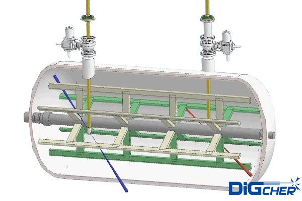 在二氟乙烯單體聚合過程中,臥式反應(yīng)釜比立式反應(yīng)釜具有更快的反應(yīng)速率,同時(shí)樹脂析出率明顯較低,樹脂各方面性能均優(yōu)。因此,臥式反應(yīng)釜在聚酯工業(yè)中的應(yīng)用非常多,尤其是最終縮聚反應(yīng)釜。臥式反應(yīng)釜是一種間歇運(yùn)行多室反應(yīng)的化學(xué)反應(yīng)釜設(shè)備,反應(yīng)釜釜體水平放置,攪拌電機(jī)設(shè)置于兩側(cè)封頭橫向放置,通常采用螺帶或螺桿式攪拌器;