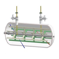 德高潔自動化化工反應(yīng)釜清洗系統(tǒng)是利用高壓水射流的動能將反應(yīng)釜內(nèi)壁及攪拌器表面上的堅硬垢物擊碎,從而剝離并清除掉。三維自動旋轉(zhuǎn)噴頭伸縮機(jī)構(gòu)安裝在反應(yīng)釜入孔上,伸縮桿伸進(jìn)反應(yīng)釜內(nèi),伸縮機(jī)構(gòu)可采用手動、電動、液壓等控制,使伸縮桿在反應(yīng)釜內(nèi)伸縮和沿反應(yīng)釜內(nèi)壁周圍方向移動,伸縮桿在移動中可以避開反應(yīng)釜內(nèi)的障礙物。根據(jù)具體實際情況可選用2孔或4孔三維自動旋轉(zhuǎn)噴頭,當(dāng)三維自動旋轉(zhuǎn)噴頭水平旋轉(zhuǎn)時,水射流形成的旋轉(zhuǎn)力矩帶動噴嘴在垂直面內(nèi)旋轉(zhuǎn)。由于三維旋轉(zhuǎn)噴頭與伸縮桿的復(fù)合運動,高壓水射流可以覆蓋反應(yīng)釜內(nèi)任何位置,從而完成反應(yīng)釜的清洗。