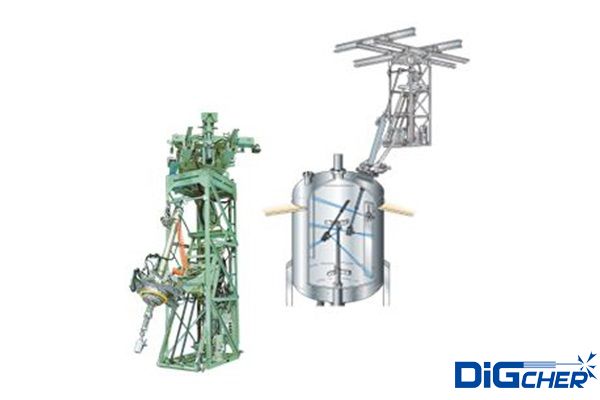 德高潔自動化制藥反應(yīng)釜清洗系統(tǒng)是利用高壓水射流的動能將反應(yīng)釜內(nèi)壁及攪拌器表面上的堅(jiān)硬垢物擊碎,從而剝離并清除掉。三維自動旋轉(zhuǎn)噴頭伸縮機(jī)構(gòu)安裝在反應(yīng)釜入孔上,伸縮桿伸進(jìn)反應(yīng)釜內(nèi),伸縮機(jī)構(gòu)可采用手動、電動、液壓等控制,使伸縮桿在反應(yīng)釜內(nèi)伸縮和沿反應(yīng)釜內(nèi)壁周圍方向移動,伸縮桿在移動中可以避開反應(yīng)釜內(nèi)的障礙物。根據(jù)具體實(shí)際情況可選用2孔或4孔三維自動旋轉(zhuǎn)噴頭,當(dāng)三維自動旋轉(zhuǎn)噴頭水平旋轉(zhuǎn)時(shí),水射流形成的旋轉(zhuǎn)力矩帶動噴嘴在垂直面內(nèi)旋轉(zhuǎn)。