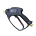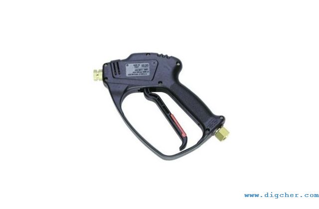 高壓水槍是高壓清洗機的重要組件之一,它主要負責清洗作業(yè)的開始與停止。高壓水槍通過高壓管路總成連接到高壓水泵的輸出端,是高壓清洗機的執(zhí)行兼控制系統(tǒng)。高壓水槍可以按排放壓力的控制閥形式做進一步定義,主要可分為兩種,溢流型和截流型。溢流型高壓水槍的工作原理是在扣動扳機時,槍上的溢流閥關(guān)閉,壓力得以迅速增大從而形成高壓水射流,當松開扳機時,槍上的溢流閥打開,水從溢流閥流出,從而釋放壓力。而截流型高壓水槍的工作原理則完全不同,扣動扳機時,壓力增大,當松開扳機時,高壓水仍保持在系統(tǒng)中,通過高壓水泵上的溢流閥流出或是循環(huán)利用。